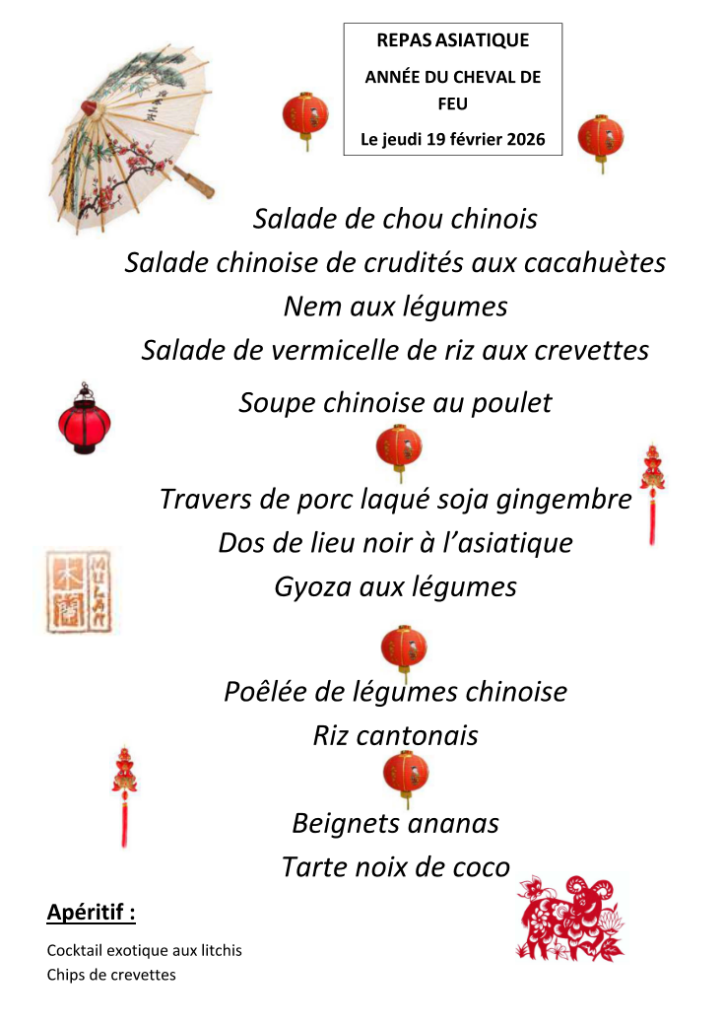 Le CESFO a le plaisir de vous proposer un repas asiatique dans ses restaurants le jeudi 19 février 2026.