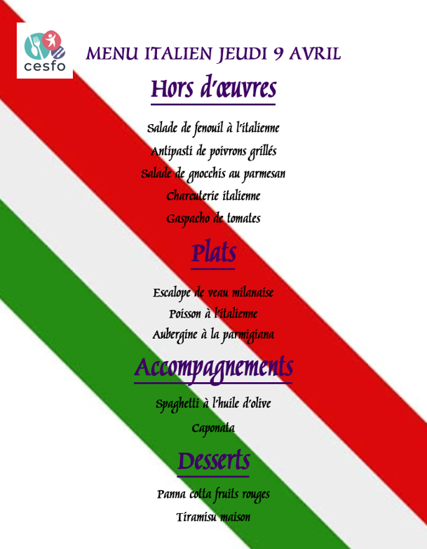 Le CESFO à le plaisir de vous proposer un repas BIO et/ou LOCAL dans ses restaurants le jeudi 18 septembre.
